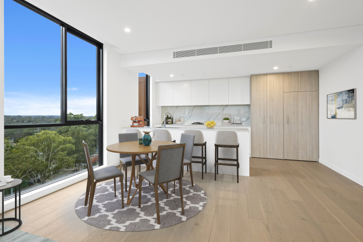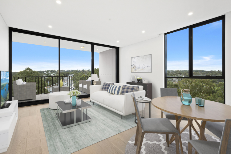 As the site cascades down at the rear, the apartments gaze over the lush foliage of the Lane Cove River National Park to the South and to the Blue Mountains in the West.